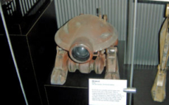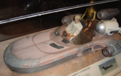 The WSMI experience is broken in to two sections – transportation, and robotics. “Robotics” has been interpreted loosely to encompass droids, cybernetics, and medical prosthetics. This section of the exhibition also includes costumes, tools and weapons, and walking machines. The displays include a large animated conversation between C-3PO and a robot designer, which introduces the visitor to the current state of real-world robotics. Also inspected through props, comparisons and narrative are such concepts as robot vision, human-robot relationships, artificial intelligence, and a behind-the-scenes look at “bringing movie robots to life”.