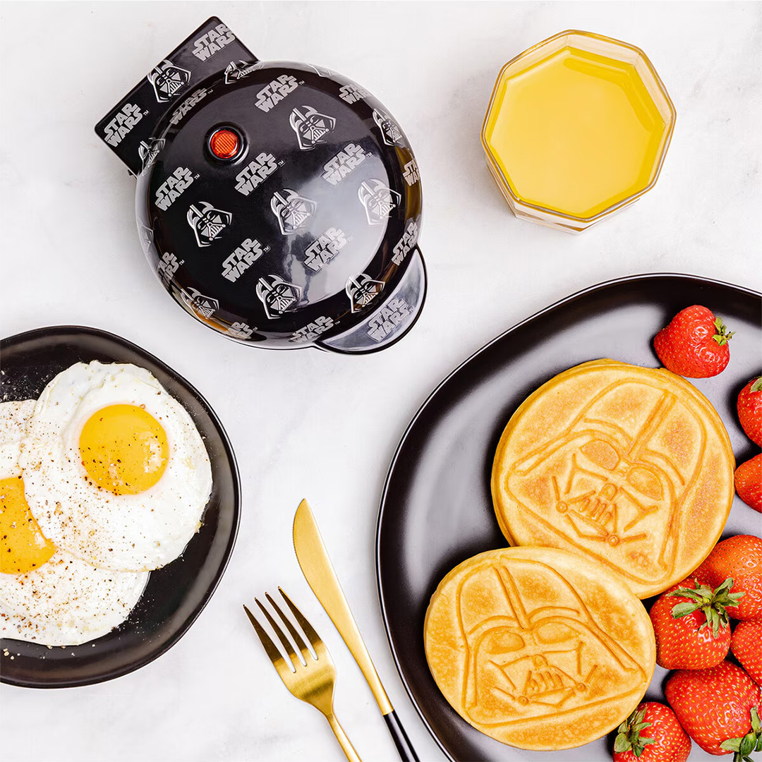 The current sale running at Farmers (ends 11 Feb) includes a couple of Star Wars-themed kitchen appliances. The Star Wars toastie maker lets you create Death Star stamped grilled cheese sandwiches, and the Darth Vader mini-waffle maker creates waffles stamped with Vader’s helmet. Their full range also includes Marvel (Spider-Man) and Disney (Stitch) products.